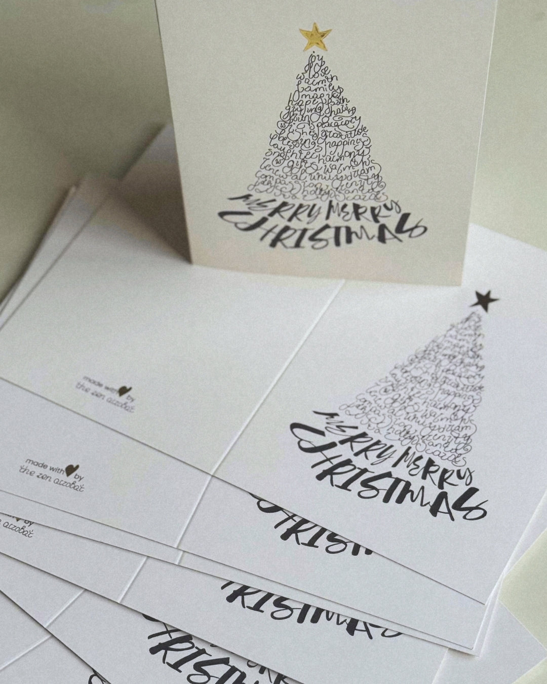 Each card features an elegant word-art tree with a star, finished with gold foil, because what is Christmas without a wee sparkle.