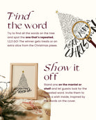 Bonus game to play with your family and friends: the Christmas tree is made out of words, depicting all the beautiful things that make up Christmas. One word is repeated. Can you find it?